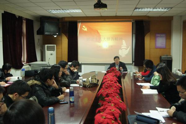 (通讯员高皓月 何龙)为了更好地学习贯彻落实党的十八大精神,12月11日下午,南开大学党委组织部、统战部联合党支部与周恩来政府管理学院2012级政治学硕士生党支部在范孙楼116举办了解读十八大精神专题讲座,邀请我校马克思主义教育学院赵铁锁教授主讲。周恩来政府管理学院党委书记王慧、南开大学党委组织部副部长牛文利、政府学院党委副书记兼副院长奚先来参加了此次讲座,到场的还有政府学院各支部党员、预备党员和入党积极分子。