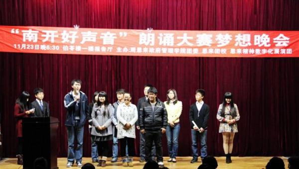 据了解,本次“南开好声音”朗诵大赛由南开大学周恩来政府管理学院团委主办,周恩来政府管理学院恩来团校、恩来精神数字化展演团承办,借鉴2012年风靡全国的《中国好声音》节目,引进了导师制,共经历了三场初赛,两场组内战,从来自全校各个院系的70多位选手中选拔出八名最优秀的学员进入最终的梦想晚会,旨在寻觅南开园最打动人心的好声音,让更多人了解并喜爱朗诵这门艺术的同时,弘扬恩来精神,向周总理致敬,向祖国致敬。