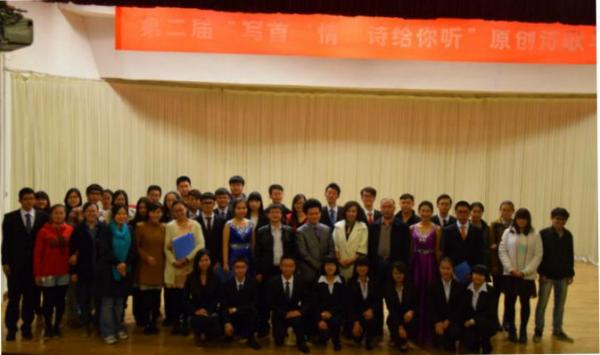 诗歌如水,浸润心灵;诗歌似火,点燃激情。2014年11月2日,秋风瑟瑟、诗意浓浓,南开大学周恩来政府管理学院恩来精神数字化展演团和天津大学求实读书社联合举办的第二届“写首‘情’诗给你听”原创诗歌与朗诵大赛在天津大学大学生活动中心拉开帷幕。