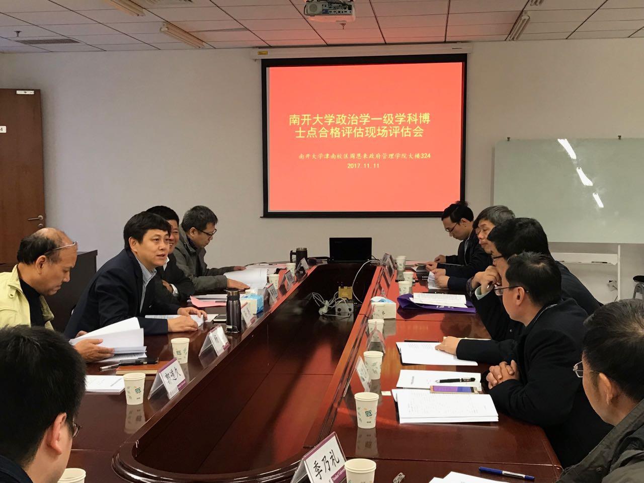(通讯员:薛乃亢;摄影:周卉)2017年11月11日上午,南开大学政治学一级博士点学科评估工作在周恩来政府管理学院324会议室召开。政府学院院长孙涛教授主持会议,政府学院副院长程同顺教授向与会专家汇报了政治学一级学科博士点建设情况,政治学二级学科方向点的多位骨干教师到场参会,校研究生院学科建设与学位管理办公室主任薛有志教授代表研究生院出席会议。