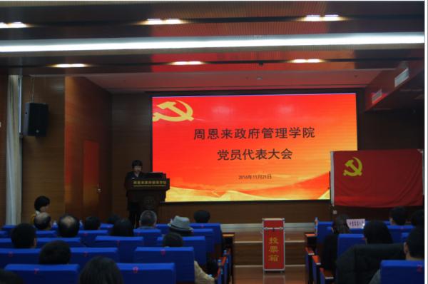 大会以举手表决的方式通过了周恩来政府管理学院出席校党代会正式候选人名单、《周恩来政府管理学院党员大会选举办法》、总监票人、监票人和计票人后,采取无记名投票和差额选举的方式对代表候选人进行了选举。选举结果,王慧等9位周恩来政府管理学院代表候选人当选出席学校第九次党代会代表。