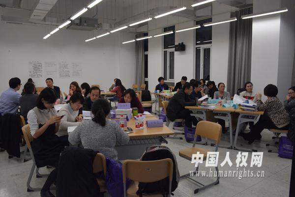 此次培训采取讲、学、研“三位一体”的方式,旨在就公务员人权培训的课程设计、培训方式、热点难点等问题展开充分交流。南开大学人权研究中心副主任常健教授首先介绍了新一期国家人权行动计划的主要内容和特点以及对公务员人权知识教育的要求,并对公务员人权培训的主要内容和需要解决的问题进行讲解,回答了与会者提出的问题。根据与会者的工作岗位,培训分成了讲习班和研讨班两组进行。在讲习班上,围绕南开大学人权研究中心编著的《公务员人权培训学员用书》和《公务员人权培训教师用书》两本教材,采用角色扮演、视频教学、分组辩论等方式,开展多样化的实验教学,与会教师积极参与教学活动,针对公务员人权培训中的课堂设计、教学方法等问题集思广益,场面非常热烈。在研讨班上,各位教研部主任交流了各自学院开展人权教育的实际情况和面临的问题,并就如何将人权知识教育融入党校、干部学院、行政学院和警官学校的课程交流了看法,提出了很多积极可行的建议。最后,两组参会者就如何有效地开展公务员人权培训进行了交流。与会者一致认为,对公务员开展人权培训是落实“国家尊重和保障人权”的宪法原则和国家人权行动计划要求的必行之举,同时也对公务员提高人权保障意识、防范职业风险具有重要作用。应当根据各类干部培训院校的课程要求,采取灵活多样的形式将人权知识融入到各门课程中去。不仅应在宪法、行政执法、刑事诉讼法等法律课程中介绍所涉及的人权内容,而且还可以在有关“四个全面”的课程中结合相关人权内容,在各类党性教育课程中讲述中国共产党是如何尊重和保障人权、促进人权事业发展的,并通过各种现实案例的分析提高公务员的人权意识和人权保障水平。