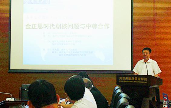 2016年6月23日下午,由周恩来政府管理学院、亚洲研究中心联合主办的南开大学朝鲜半岛研究论坛“金正恩时代朝核问题与中韩合作”会议在周恩来政府管理学院144会议室举行。南开大学副校长朱光磊教授出席会议讲话,南开大学亚洲研究中心主任杨龙教授为会议致欢迎辞。来自南开大学、中共中央党校、北京大学、中国外交学院、社会科学院、环球时报、新华社、韩国中央日报、延世大学的18位专家、学者应邀出席了本次会议。在京出席第二十六届东北亚合作对话会的韩国延世大学政治外交系教授文正仁先生访问我校并参加会议。