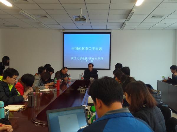 王处辉教授开题指出,教育公平问题是教育中最基础的问题,也是永恒的问题,谈教育公平问题,既要从政府和社会的宏观视角研究,也要顾及个人的微观角度。接着,王处辉教授从2016年全国“两会”上有关教育的热点问题谈起,分析指出当前中国因教育资源配置不均衡问题而引发的天价学区房、择校热以及“高考移民”等现象。随后,王处辉教授总结国内外学者对教育公平问题的研究现状,以及中国为实现教育公平作出的不懈努力,指出当前中国教育中存在的城乡不平等、地区不平等、性别不平等现象,并从教育起点、教育过程、教育结果三个层面进行深入分析。最后,王处辉教授针对如何破解教育公平难题进行了分析,并引导启发同学们进一步深入思考这些问题,为实现我国的教育公平目标共同努力。
