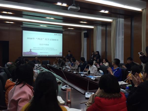3月15日晚,政府学院“国策论坛”系列讲座暨“博导论坛”第六期在学院144报告厅成功举办,民政部决策咨询专家、南开大学社会建设与管理研究院院长、周恩来政府管理学院教授、博士生导师关信平老师为在场师生对今年“两会”民生话题作了全面解读。