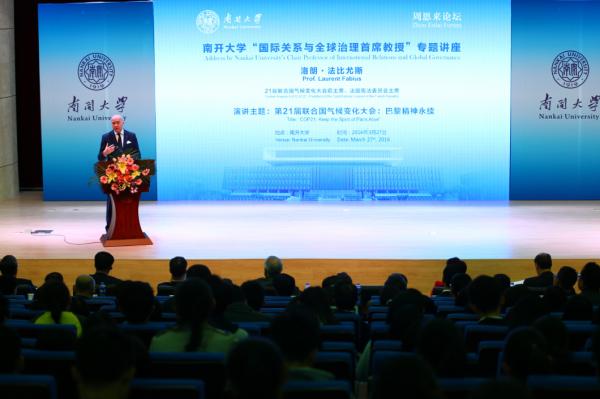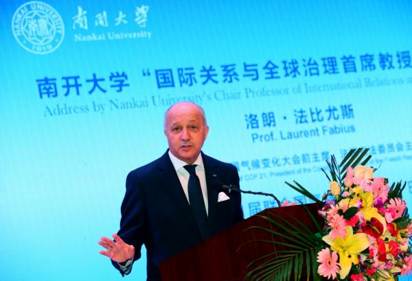 此次到访南开大学,除接受学位外,法比尤斯还做客“周恩来论坛”,以“第21届联合国世界气候变化大会:巴黎精神永续”为题发表了主旨演讲。