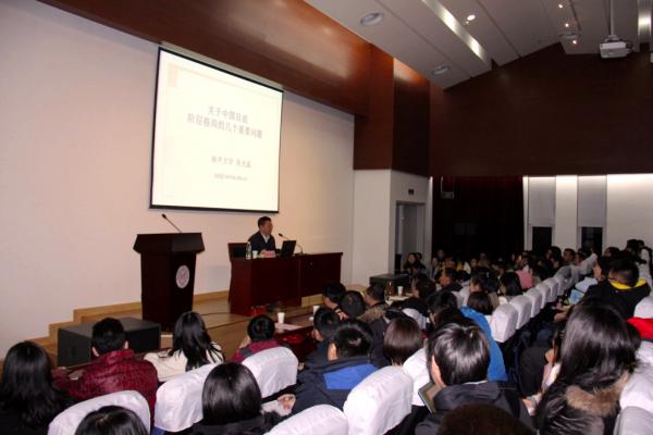 12月28日晚,南开大学党委常委、副校长朱光磊教授受邀“周恩来政府管理学院博导论坛”,为津南校区广大师生带来了“关于中国当前阶层格局重要问题”的主题讲座。讲座由中国政府与政策联合研究中心、周恩来政府管理学院团委主办,周恩来政府管理学院研究生会承办。周恩来政府管理学院院长吴志成教授出席并主持讲座,十余位教授学者、两百余名学生参加。
