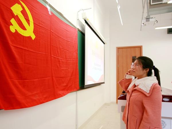 南开新闻网讯(记者 聂际慈 摄影报道)“我志愿加入中国共产党,拥护党的纲领,遵守党的章程,履行党员义务,执行党的决定,严守党的纪律,保守党的秘密,对党忠诚,积极工作,为共产主义奋斗终身,随时准备为党和人民牺牲一切,永不叛党!”11月30日,南开大学周恩来政府管理学院2013级本科生王娇面对党旗举起右拳,庄严宣誓,从这天起,她成为一名光荣的中国共产党员。