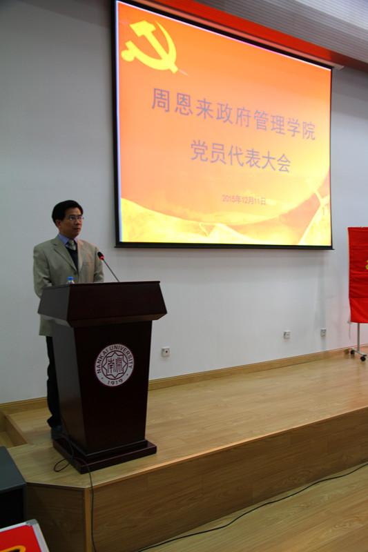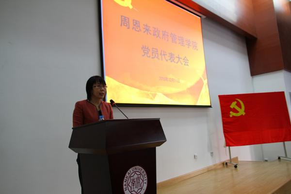12月11日,中国共产党南开大学周恩来政府管理学院党员代表大会在津南校区旅游学院报告厅召开。本届大会的议程是审议学院本届党委工作报告,对本届委员会和书记、副书记进行民主测评,选举产生新一届中共南开大学周恩来政府管理学院委员会。会议由吴志成同志主持,共有112名党员代表出席。