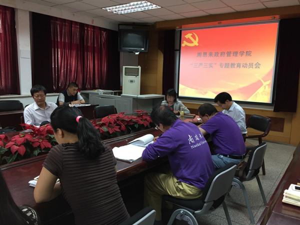 5月19日,周恩来政府管理学院在范孙楼召开了“三严三实”专题教育动员部署会暨专题党课。学院党委书记王慧作动员部署报告暨专题党课,院长吴志成主持会议。学院领导班子成员和教师党员出席会议。