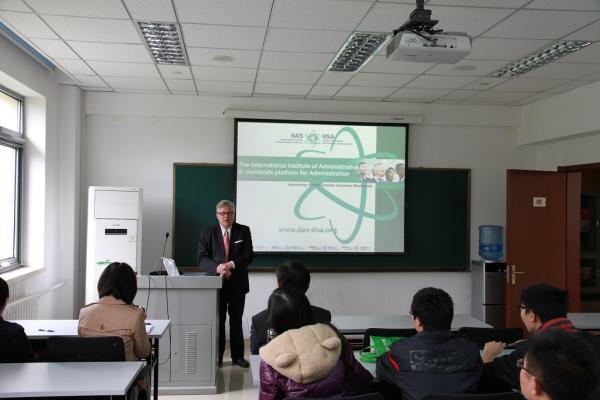吉尔特·波克特教授首先向南开师生介绍了国际行政科学学会的建立背景、职责目标、工作内容、组织结构和相关活动等。之后,波克特教授从公共部门的责任、公信力的表现和变革、公信力对公共部门的作用、建立和保持公信力的因素等几个方面入手,具体阐述了公信力与公共部门的相互关系。最后,波克特教授与到场学生就相关问题进行了深入交流和讨论。