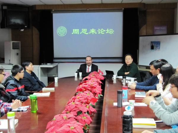 (通讯员:刘 志)2013年11月28日,知名国际关系理论家、新古典现实主义开创者、美国俄亥俄州立大学教授兰德尔·施韦勒(Randall Schweller)做客周恩来政府管理学院“周恩来论坛”,给南开师生带来一场题为“新千年的全球失序”的精彩演讲。论坛由周恩来政府管理学院国际关系系主任韩召颖教授主持,来自南开大学多个院系的60余位师生参加。