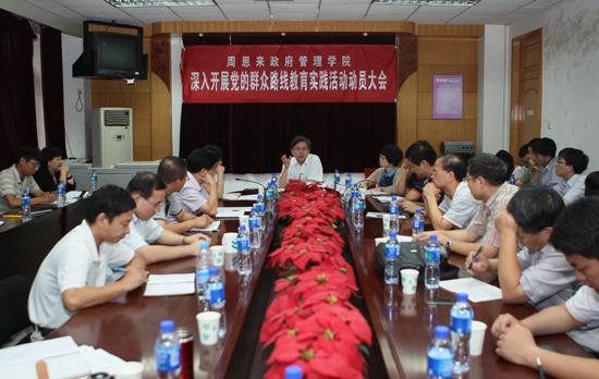 周恩来政府管理学院党委书记王慧作了动员报告,并介绍了学院深入开展党的群众路线教育实践活动的实施方案。她强调,深入开展党的群众路线教育实践活动是我们党提出的重大政治任务,意义深远,每一位党员都要认真贯彻落实学校党委的精神和要求,以高度的政治责任感和历史使命感,积极参与到教育实践活动中来,务求取得实效,促进学院各项事业的发展。