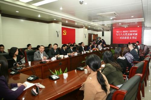 为深化活动主题、增加南开学子对党的十八大的深刻认识,10月31日,2010级社会学本科生党支部举行了主题为“‘喜迎十八大•图说党代会’之与十八大代表面对面——对话薛进文书记”的党日活动。校党委书记薛进文,党委副书记、副校长杨克欣出席,党委学工部、研工部、校团委、周恩来政府管理学院负责人,以及2010级社会学本科生党支部全体成员和其他学生代表参加。