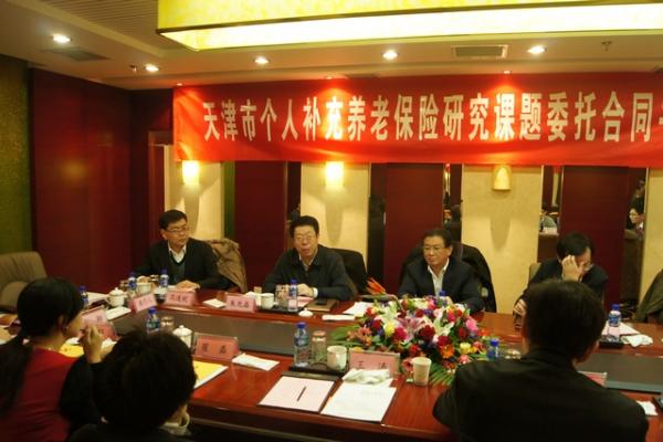 (通讯员汤明磊)个人补充养老保险是覆盖全民的补充养老保险制度,是多层次养老保险制度体系的重要组成部分。为建立天津市个人补充养老保险提供理论依据和政策建议,进一步提高全民的老年收入水平,1月7日下午,南开大学周恩来政府管理学院、中国人民人寿保险股份有限公司天津分公司、天津人社局在汇高酒店举行了天津市个人补充养老保险研究课题委托合同书签约仪式。出席签约仪式的有天津市政府副秘书长陈宗胜、南开大学副校长朱光磊、天津市人力资源和社会保障局职工养老保险处处长高连欢、中国人民人寿保险股份有限公司天津分公司副总经理孙宇、南开大学周恩来政府管理学院副院长常健、南开大学周恩来政府管理学院副院长孙涛。周恩来政府管理学院部分师生以及中国政府与政策联合研究中心团队的成员参加了签约仪式。