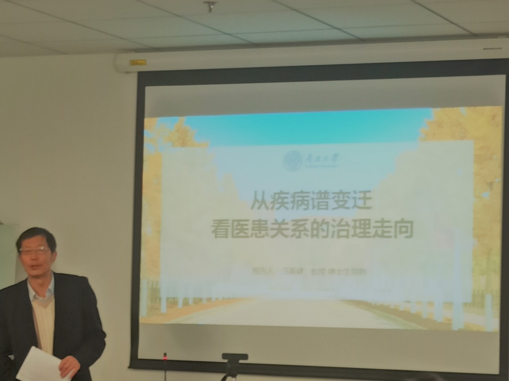 天津市社会心理学学会会长、南开大学周恩来政府管理学院荣休教师汪新建教授以“从疾病谱变迁看医患关系的治理走向”为主题,分别从中国社会百年疾病谱变迁轨迹、疾病谱变迁对医患关系的影响、医患关系治理的未来趋势三个方面做了深入的阐释。