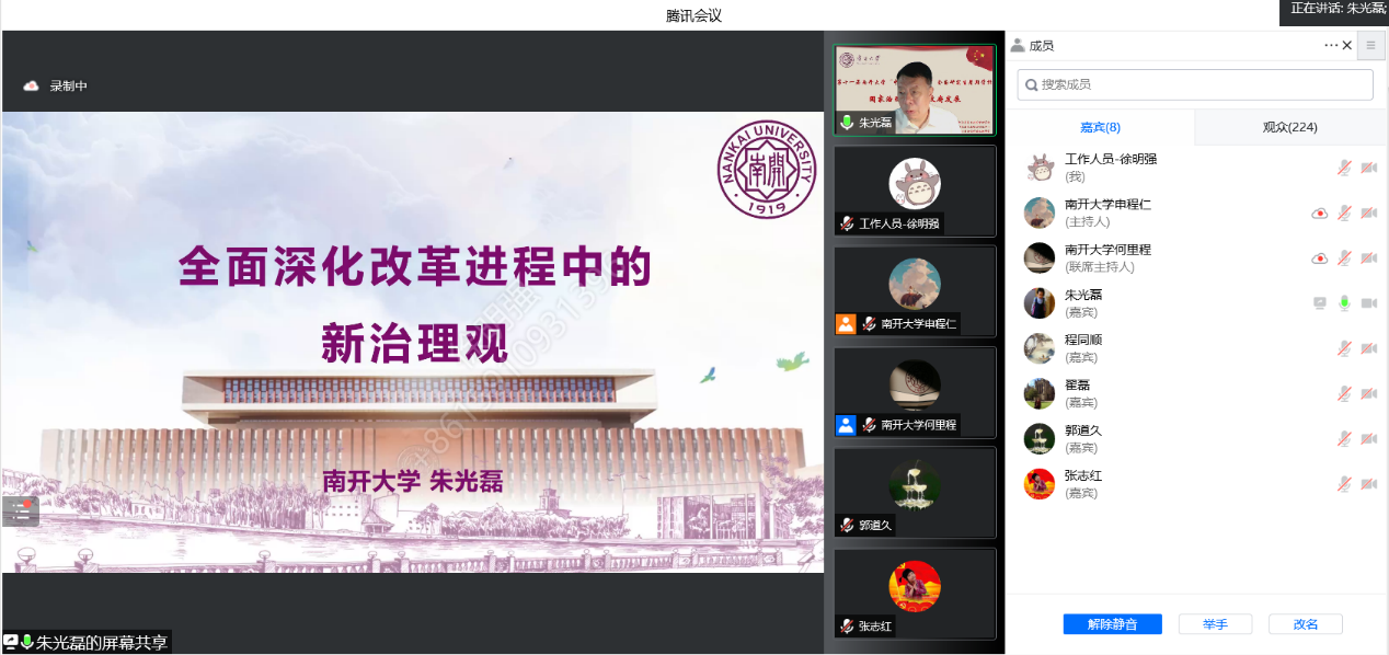 (通讯员:徐明强 申程仁)7月4日上午,2022年“中国政府发展”全国研究生暑期学校开班仪式以线上形式举行。南开大学原副校长、讲席教授,中国政府发展联合研究中心主任朱光磊教授出席,周恩来政府管理学院部分师生以及来自海内外著名高校的博士生、研究生、高年级本科生200余人参加。开幕式由南开大学周恩来政府管理学院副院长、中国政府发展联合研究中心副主任程同顺教授主持。