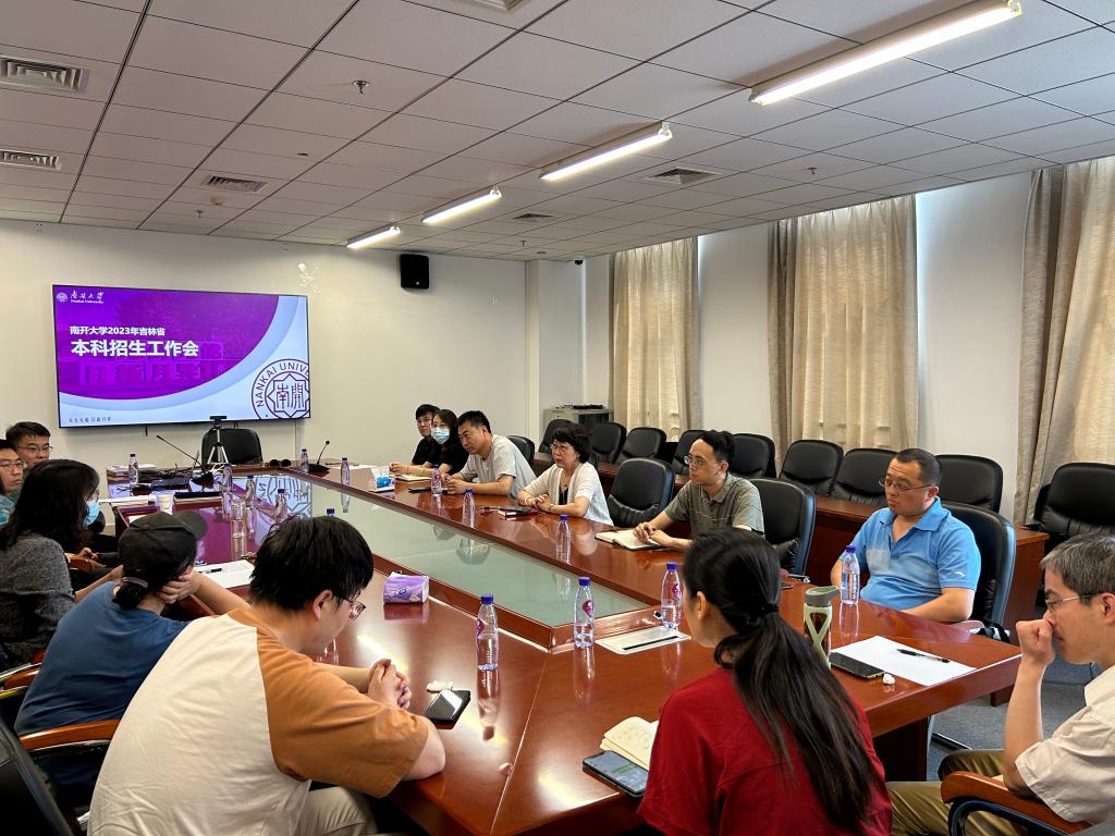 (通讯员 娜菲沙·哈力克 段煜坤)在南开大学本科生招生推动会会议精神的指导下,为提高2023年南开大学在吉林省的本科生源质量,做好本年度吉林省招生工作, 5月16日,周恩来政府管理学院在学院324会议室召开了南开大学2023年吉林省本科招生工作启动会。吉林省包省牵头单位周恩来政府管理学院书记王慧,学院党委副书记、副院长宋媛,学院副院长张宁,结对单位人文社会科学研究部马君及吉林省招生工作组各地区负责老师参与了会议,会议由宋媛主持。
