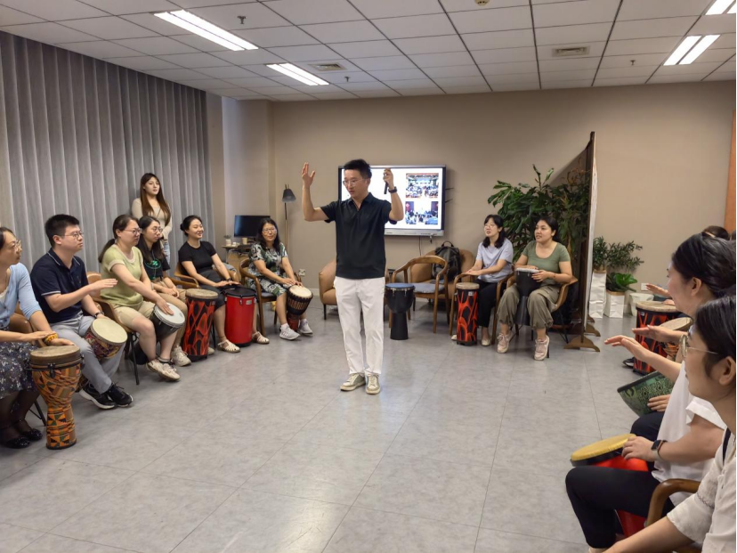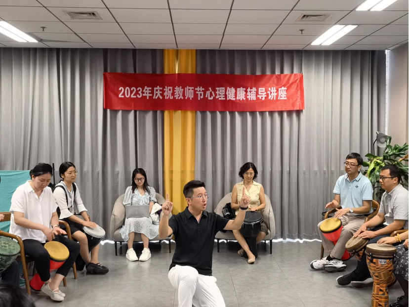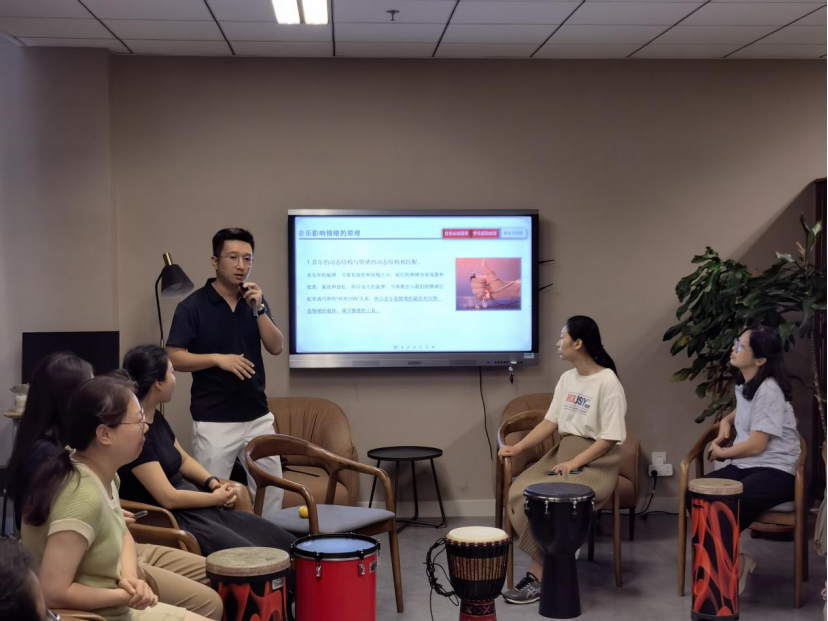 (通讯员 李玉珊 摄影 路梅简) 9月7日下午,在第39个教师节即将到来之际,由我院主办、以“释放压力 ‘鼓’舞人心”为主题的音乐团体心理减压讲座在南开大学教职工心理健康服务中心举办。天津音乐学院艺术心理实验室田野老师受邀担任主讲。讲座面向南开所有在职在编教职工开放,老师们积极参与、反响热烈。