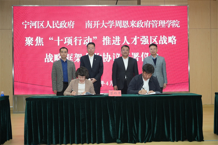 全面落实党中央和天津市重大部署,学院与天津市宁河区人民政府签署战略框架合作协议,通过共建大学生实习实训基地、大学生就业创业基地、科研平台基地、智库合作基地等,在人才培养、引进、使用,科研平台延伸、科技成果转化、智库合作等方面开展深度战略合作。