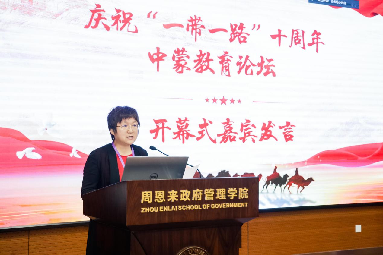 天津市高等教育学会会长宋改敏、蒙古国“一带一路”国际发展研究院院长刘亚丛(线上)、南开大学周恩来政府管理学院副院长张宁、内蒙古民族幼儿师范高等专科学校校长李春晖、蒙古国立教育大学教育学院院长德·孟和吉日嘎拉(线上)、天津市“一带一路”人文与人才发展研究中心常务副主任丁晔、天津外国语大学“一带一路”天津战略研究院执行院长李名梁出席开幕式并致辞,开幕式由我院教授陈巴特尔主持。