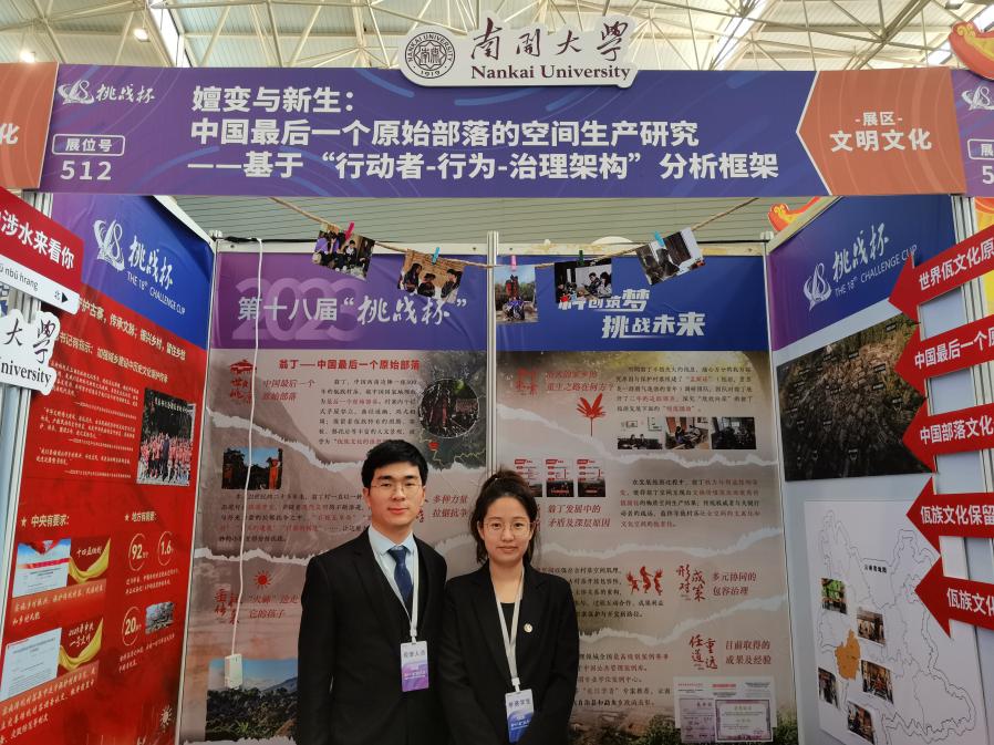 在刚刚闭幕的第十八届“挑战杯”全国大学生课外学术科技作品竞赛终审决赛中,由南开大学周恩来政府管理学院吴晓林、马学广、刘银喜老师指导,任鑫露、陈佳进、龙志奇、李卓琳等同学完成的作品《嬗变与新生:中国最后一个原始部落的空间生产研究》获得全国一等奖。此前,该项目获得天津市第十七届“挑战杯”大学生课外学术科技作品竞赛特等奖。