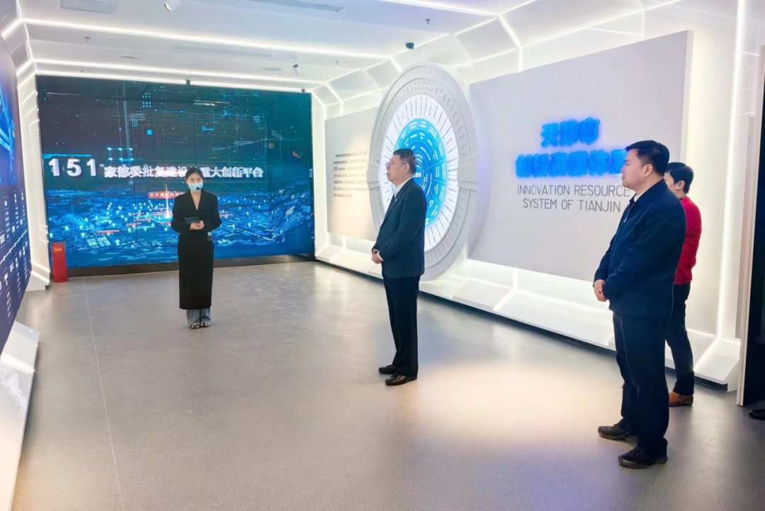 朱光磊教授一行首先参观了天开高教科创园展示中心,系统了解了人工智能、医药健康、新能源新材料等新兴领域在园区的发展情况,以及政务服务、金融服务、商务服务、知识服务等创业服务体系在园区的建设情况,切实感受到一个充满科技感、现代感、未来感的科创园区的蓬勃生机与旺盛活力。