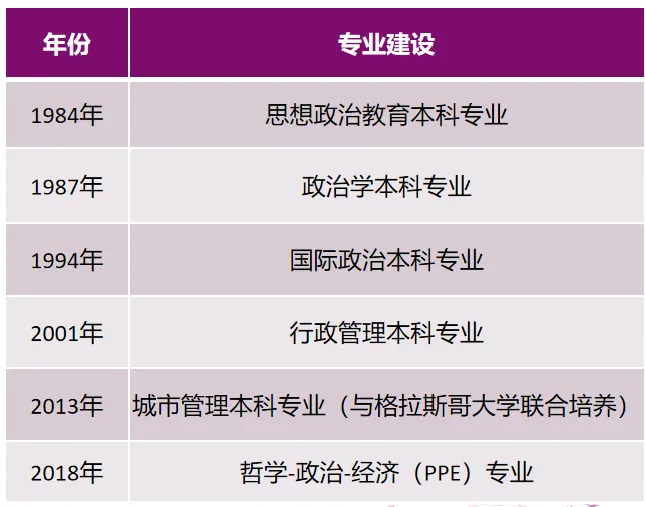 南开大学政治学重建以来,一直重视专业和学科建设问题。1984年设立思想政治教育专业,1987年设立政治学专业,1994年设立国际政治专业,2001年开设行政管理专业,2013年设立城市管理专业,2018年开设PPE专业。