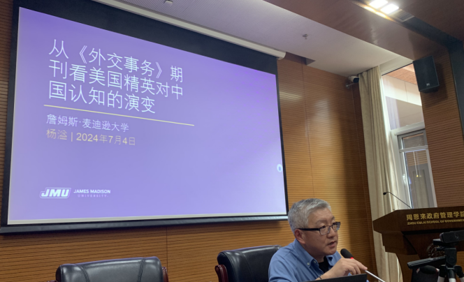 2024年是南开大学建校105周年,周恩来总理第三次回母校视察65周年。周恩来政府管理学院开展了系列讲座活动共襄盛举。7月4日中国政府发展联合研究中心邀请詹姆斯·麦迪逊大学政治学系教授、詹姆斯·麦迪逊大学华盛顿中心主任杨溢教授为政府学院师生做题为《从<外交事务>期刊看美国精英对中国认知的演变》的讲座。杨溢教授讲座聚焦《外交事务》杂志自1979年至2023年发表的涉华研究的文章为样本与案例,通过实证方式揭示美国精英对华认知的内涵及随时间推移发生的变化。报告围绕美国对中国整体关注强度如何?这种关注强度是如何随时间变化?自1979年中美双边关系正常化以来哪些问题被认为是有显著影响?美国精英对中国表现出多大程度的不信任感?这种不信任感是如何随时间波动的?美国精英是如何判断美中关系所在的政治环境等问题展开。杨教授从美国精英对华关注强度、显著议题、不信任度及行为码四个方面解读美国精英关于中国的认知的形成和演变过程,揭示“中国”是如何在美国精英脑海中被认知和解读的。杨溢教授的研究发现,美国精英对中国的不信任感与感知的敌意出现了三次激增。近年来“新冷战”叙事在美国精英圈中普及以及美国决策者倾向于通过表面类比过去的案例而误用历史格外令人担忧。