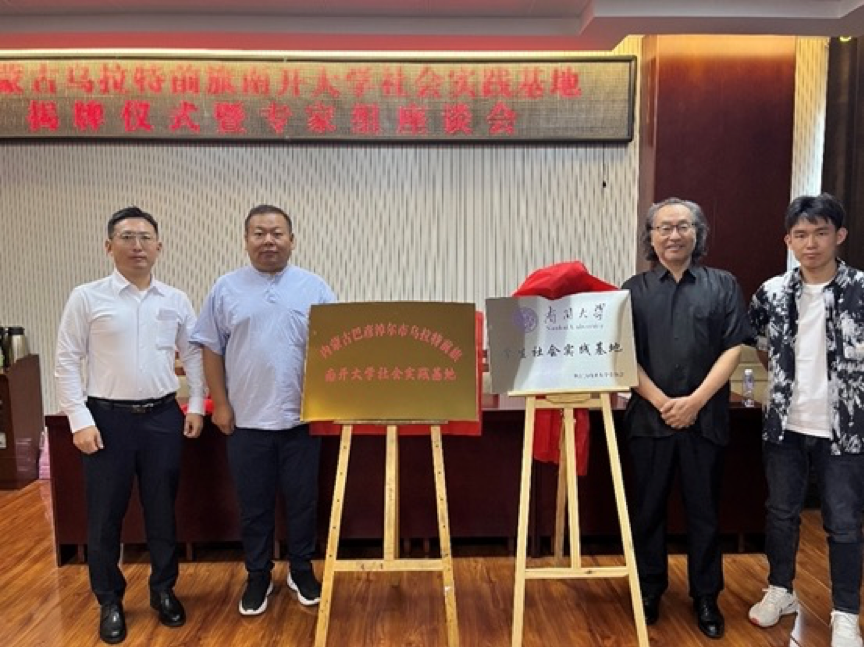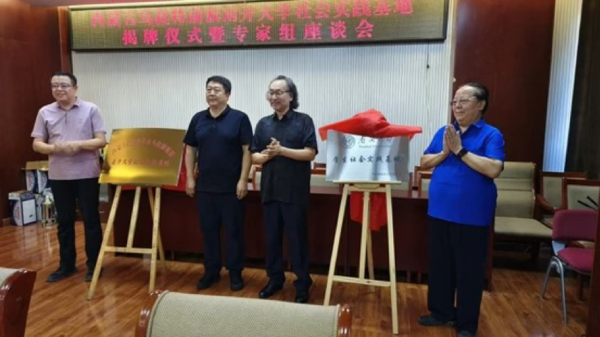 最后,乌拉特前旗党委宣传部部长郝民对南开大学一行师生的到来表示热烈欢迎,并就乌拉特前旗的基本情况、近期发展、未来规划等做了详细的汇报。与会各位专家、学者还就社会实践基地未来的运行机制、工作内容以及乌拉特前旗北疆文化发展研究中心的规划进行了热烈的讨论。乌拉特前旗北疆文化发展研究中心主任阿拉腾巴根做了总结,并宣布南开大学社会实践基地揭牌仪式圆满成功。参加此次“社会实践基地”揭牌仪式的南开大学代表有:我院陈巴特尔教授、博士研究生金秋实、社会学院博士研究生王特日格乐、人工智能学院本科生郭禹含。