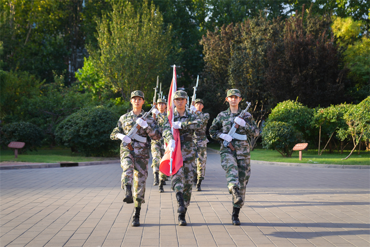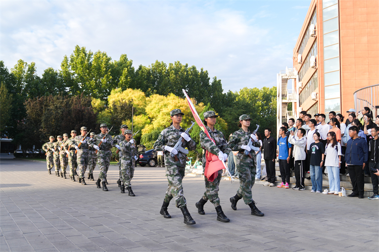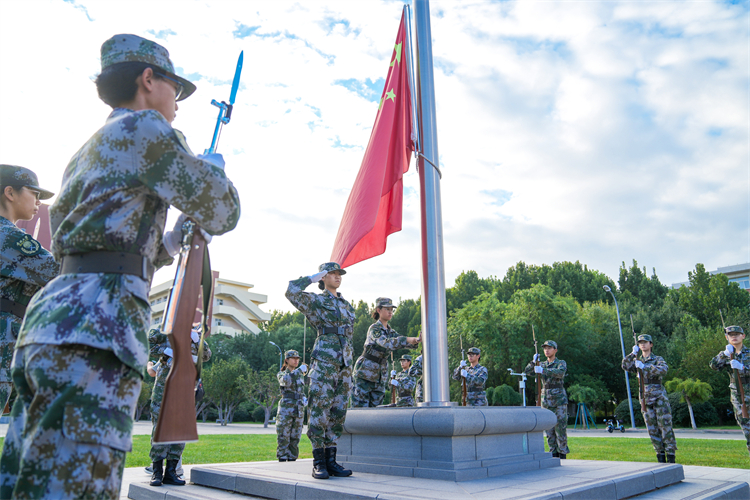 初秋的清晨,已有微微凉意。南开大学国旗护卫队迈着整齐的步伐,以庄严姿态护卫国旗行进至升旗台。伴随着雄壮激昂的《义勇军进行曲》,鲜艳的五星红旗在清晨的阳光中冉冉升起。全场师生庄严肃立,向国旗行注目礼。