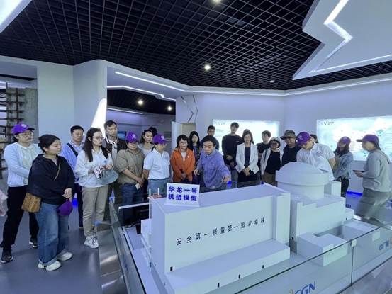 2010年9月5日,时任中共中央政治局常委、中央书记处书记、国家副主席习近平来到宁德考察宁德核电项目。在党中央的领导下,2016年7月,中广核宁德核电站一期工程四台机组全部投产,年发电量达300亿千瓦时,相当于2015年福建省全社会用电量的16%。2024年7月,二期工程建设全面拉开序幕。通过讲解员对“华龙一号机组模型”的细致介绍以及对核能发电相关知识的科普,团队成员学习了核能发电原理、机组功能模块、核电安全性能等知识,对宁德核电站项目也有了初步认识。核电项目基地的参观让我们对核能这一前沿技术有了更多的思考,也更加坚定了推动清洁能源应用、促进可持续发展的信念。
