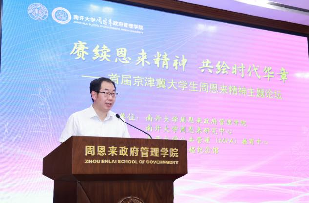 5月24日,在周恩来总理第三次重返母校视察南开大学66周年纪念日来临之际, “赓续恩来精神,共绘时代华章”首届京津冀大学生学习周恩来精神主题论坛在南开大学周恩来政府管理学院成功举办。