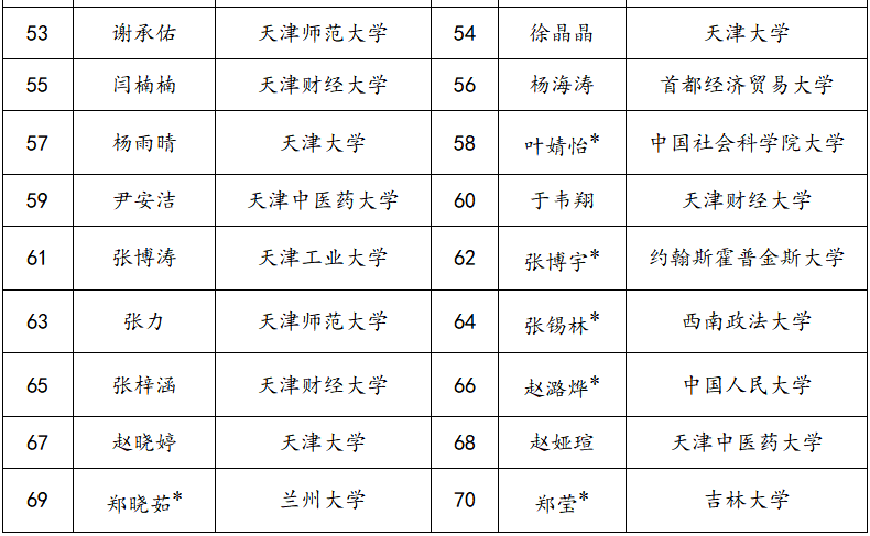 4.具体录取名单如下,提供住宿的同学姓名后带*号。
