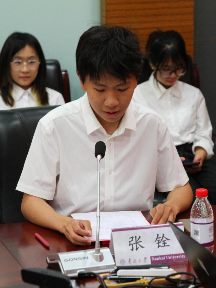 2021级政治学与行政学专业的张铨同学作为获奖学生代表发言。他对捐资校友冯泉和母校师长表示衷心感谢,回顾在南开大学政治学专业四年的求学成长历程,他表示作为南开政治学人,未来一定将继续以“知中国,服务中国”为使命,不负“华丹”之誉,带着南开人的底气与锐气,在更加广阔的天地里发光发热。