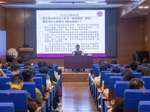 随后,朱光磊教授以“政府理论的四维分析框架”为主题进行授课。他从中国政治学的特殊性出发,阐释了研究政府理论的重要性。层层递进地介绍了政府理论的四维分析框架,深入分析了四维分析框架中政府职能、机构、体制与过程四个方面的核心内容,并补充讲解了纵向间政府关系与政府发展的内容。最后,朱光磊教授围绕四维分析框架分析了中国政府过程的特点。