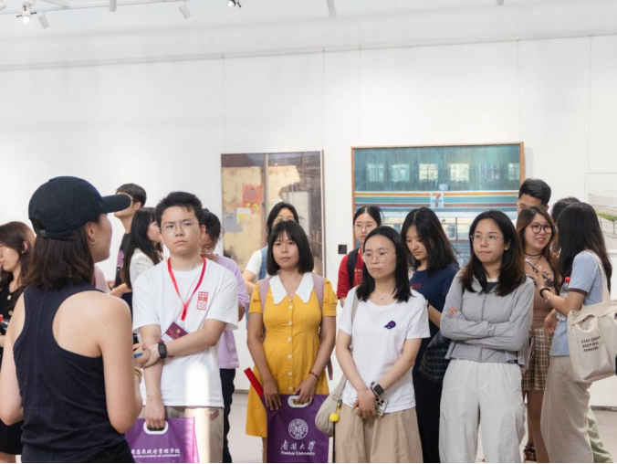 随后,师生们参观了天美艺术街区。该街区是河北区依托天津美术学院,深度整合IP资源,以“文旅为核心基因、旅游为吸引驱动、商业为重要载体”,推动“资产、文化、IP、空间、内容”全要素融合发展的示范性项目。通过实地参观,河北区打造文化艺术旅游产业的独特思路与发展战略获得了学员们的一致好评,领略了现代艺术与城市文化在此交融共生的魅力。
