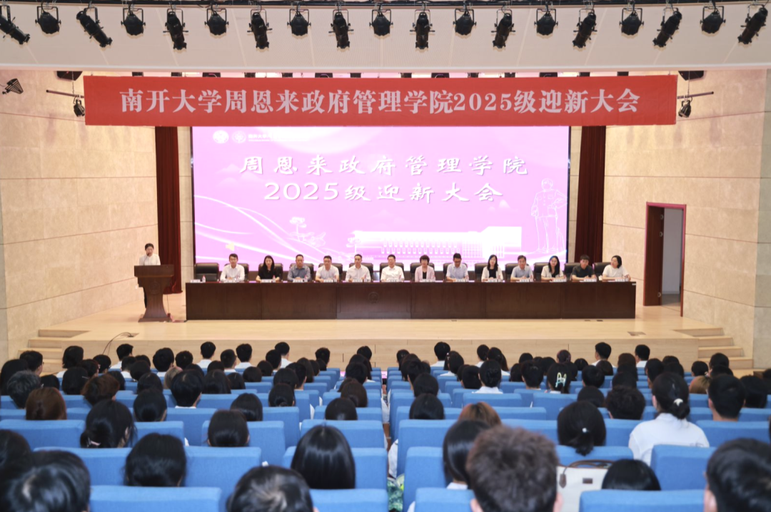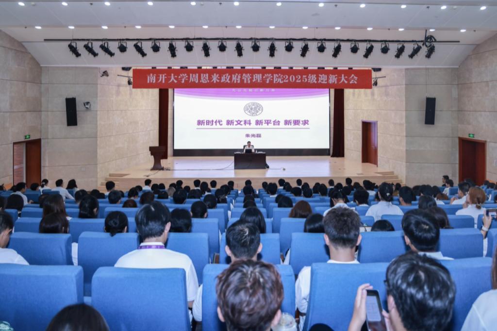 秋光清朗,惠风和畅。9月14日下午,南开大学周恩来政府管理学院2025级新生迎新大会于津南校区业务西楼报告厅举行,共同翻开属于周政人的青春扉页。南开大学讲席教授、原副校长朱光磊,学院党委书记王慧、院长吴晓林等院领导班子全体成员,各系主任代表、2025级本科班导师、团委教师及全体本硕博新生共同参会。大会由学院党委副书记兼副院长崔宇主持。