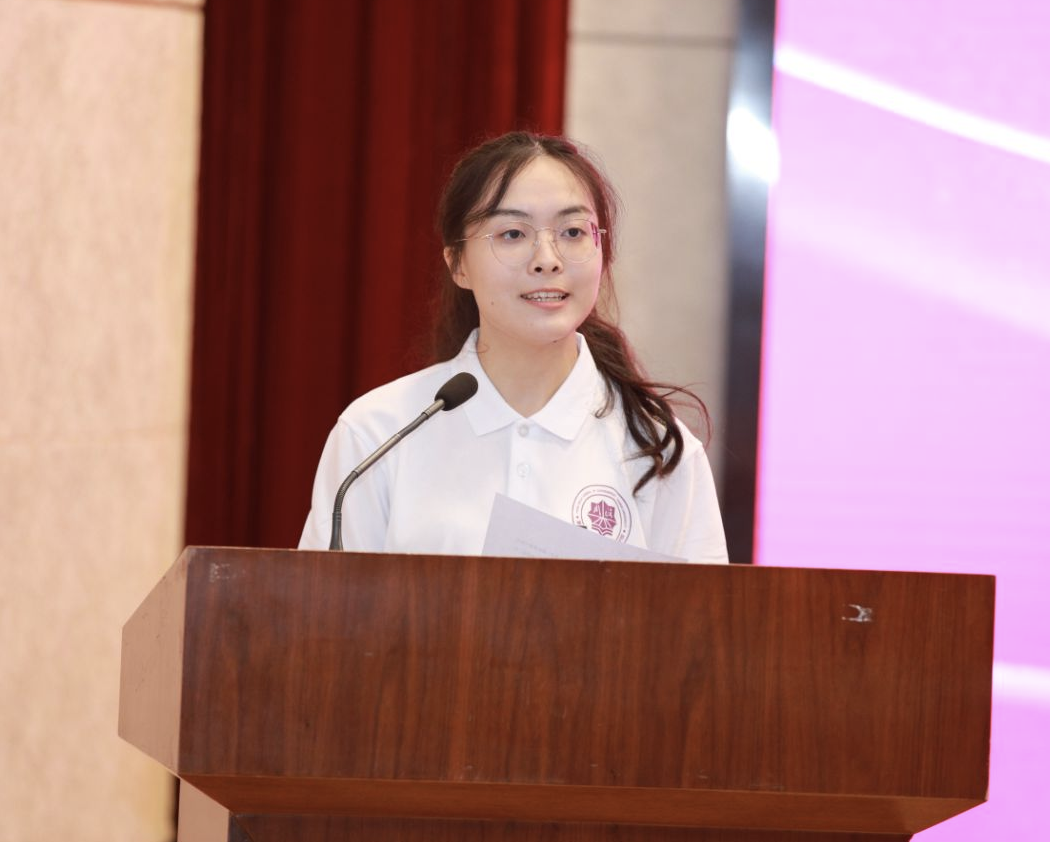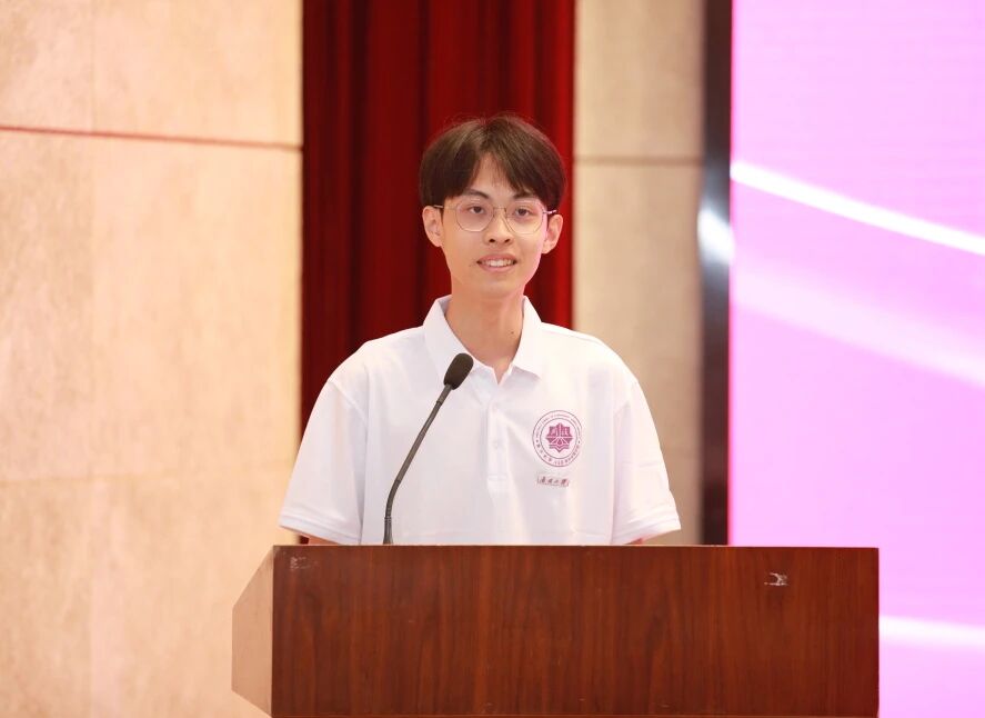 新生代表2025级本科生傅梓航同学以《三问初心在,百年南开新》为题,回溯了自己因南开师长“允公允能”的精神感召而坚定选择的历程。他从张伯苓老校长的“爱国三问”出发,将个人成长与南开厚重的历史脉络相融合,表达了对周恩来学长“相会于中华腾飞时”宏愿的深切共鸣。他呼吁全体新生以南开为精神灯塔,既涵养“公以为先”的胸怀,也锤炼“能以立业”的本领,更珍惜同行之谊,在渤海之滨共书无愧于时代、无愧于南开的新篇章。