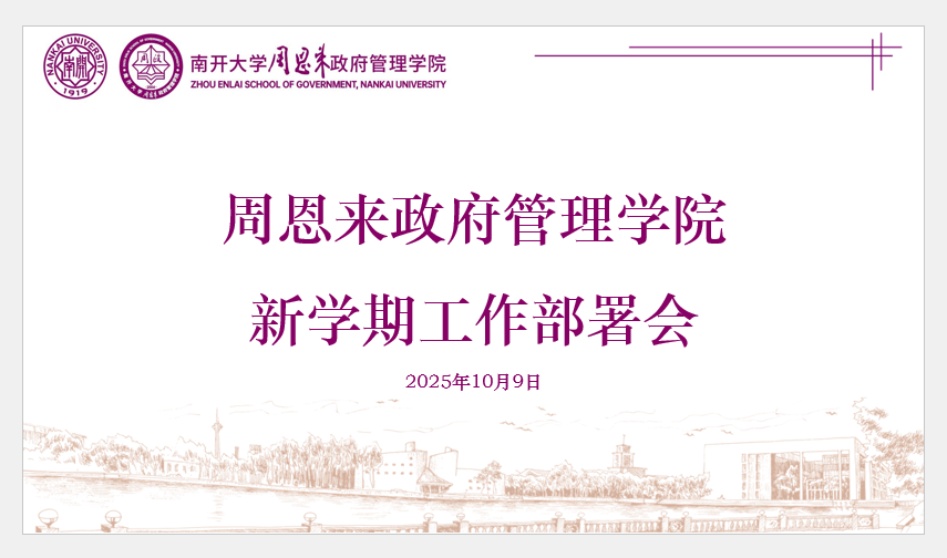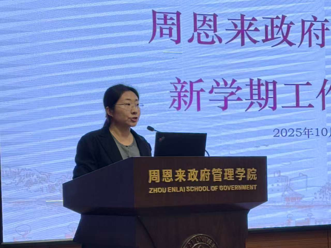为深入贯彻落实学校新学期工作部署会要求,推动新学期重点工作顺利开展,10月9日,周恩来政府管理学院于128报告厅召开新学期工作部署会。会议由学院党委书记王慧主持,学院班子成员、全体教职工参加会议。