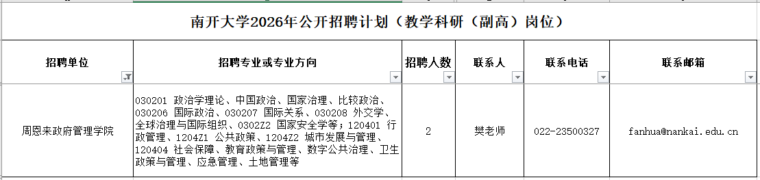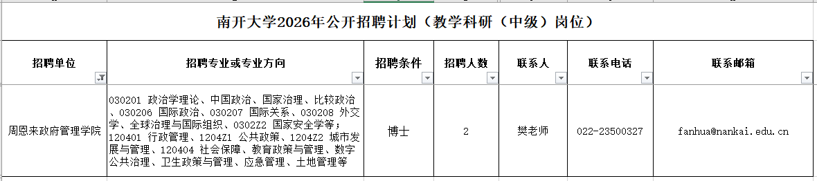 诚挚欢迎海内外优秀人才加盟南开大学周恩来政府管理学院。