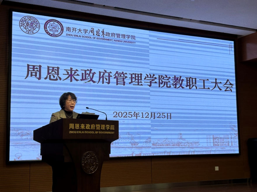 12月25日,周恩来政府管理学院召开全院教职工大会,全面总结2025年度学院工作成效,科学谋划2026年发展任务。会议由学院党委书记王慧主持,学院全体教职工参加。