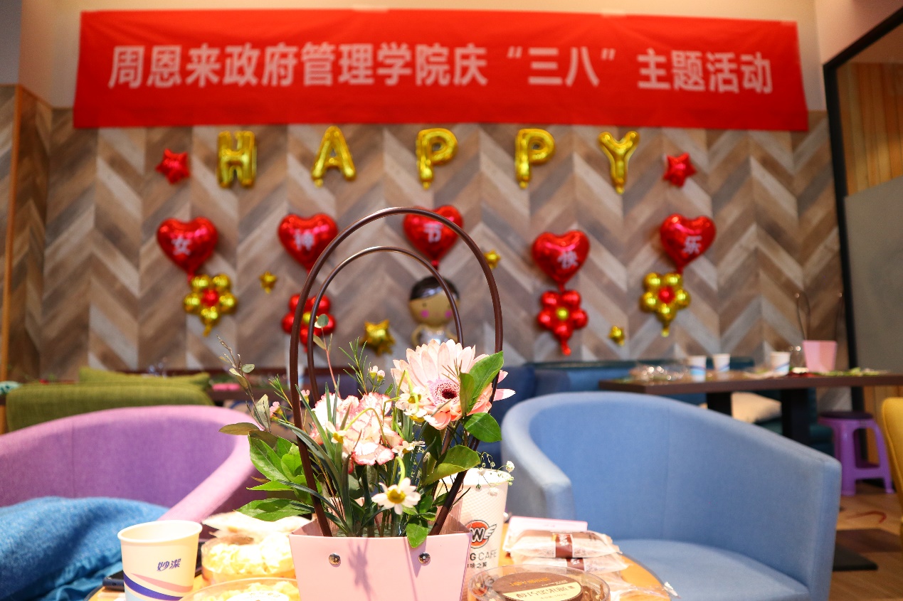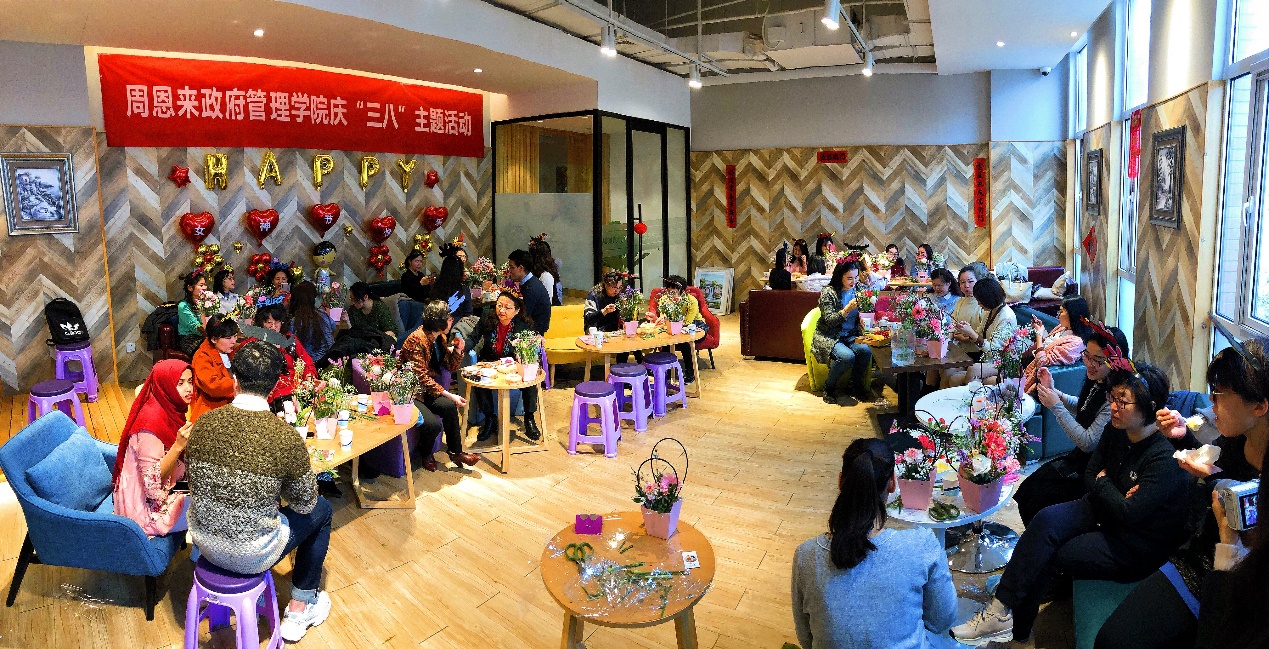 (通讯员:刘心蕊 沈昱泽)3月8日下午,周恩来政府管理学院组织开展了庆“三·八”花艺沙龙。活动由学院工会主办,学院研究生会承办,旨在向全院女性师生致以节日的祝福,感谢女教职工的辛勤付出,加强师生之间的情感交流,引导广大女性树立自信向上的精神风貌。学院党委书记王慧、党委副书记兼副院长宋媛、副院长张更辉和师生代表欢聚一堂,共同庆祝。