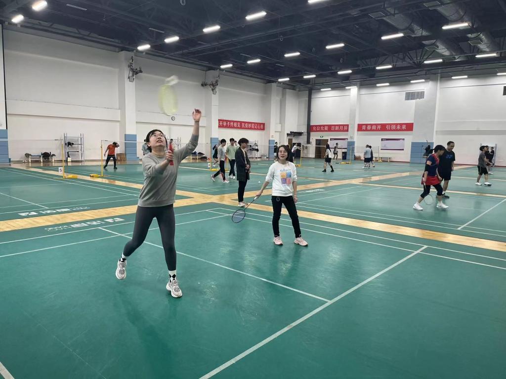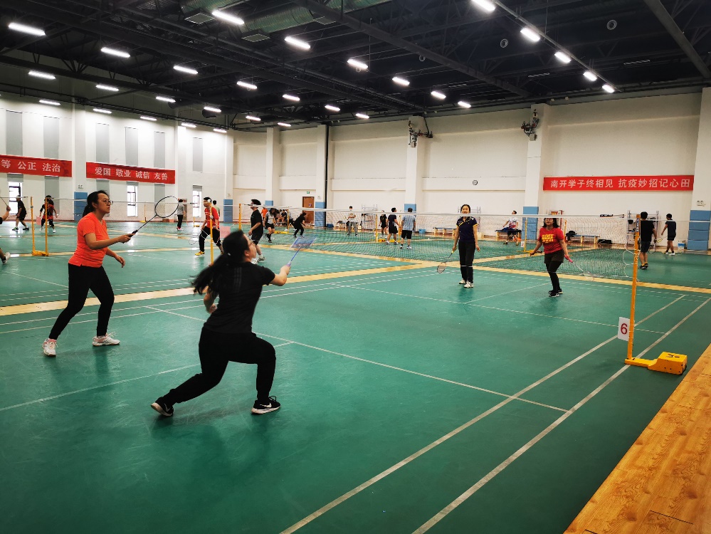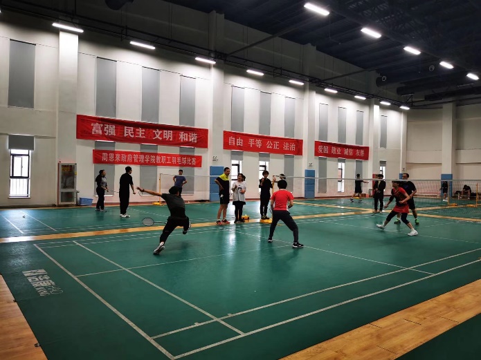 政府学院教职工或身手矫健,或活泼灵动,充分展现了政府学院教职工积极向上的精神风貌。赛场上,参赛人员自由挥舞着羽毛球拍;赛场外,观众们目不转睛,欣赏着同事们的英姿。