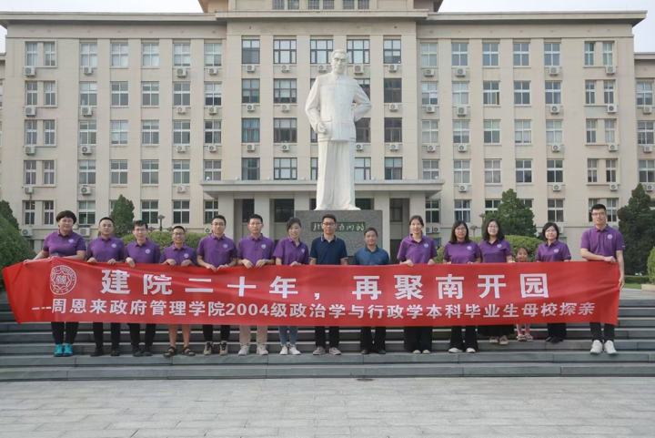 (通讯员 刘远涛)在周恩来政府管理学院建院二十周年之际,2004级政治学与行政学专业本科生于8 月 17 日从全国各地回到魂牵梦萦的校园,追忆曾经的青春年华,倾诉对南开园的思念,感受毕业十六年以来学校和学院的巨大变化。南开大学国家安全研究院院长程同顺教授、周恩来政府管理学院副院长郭道久教授参加活动。