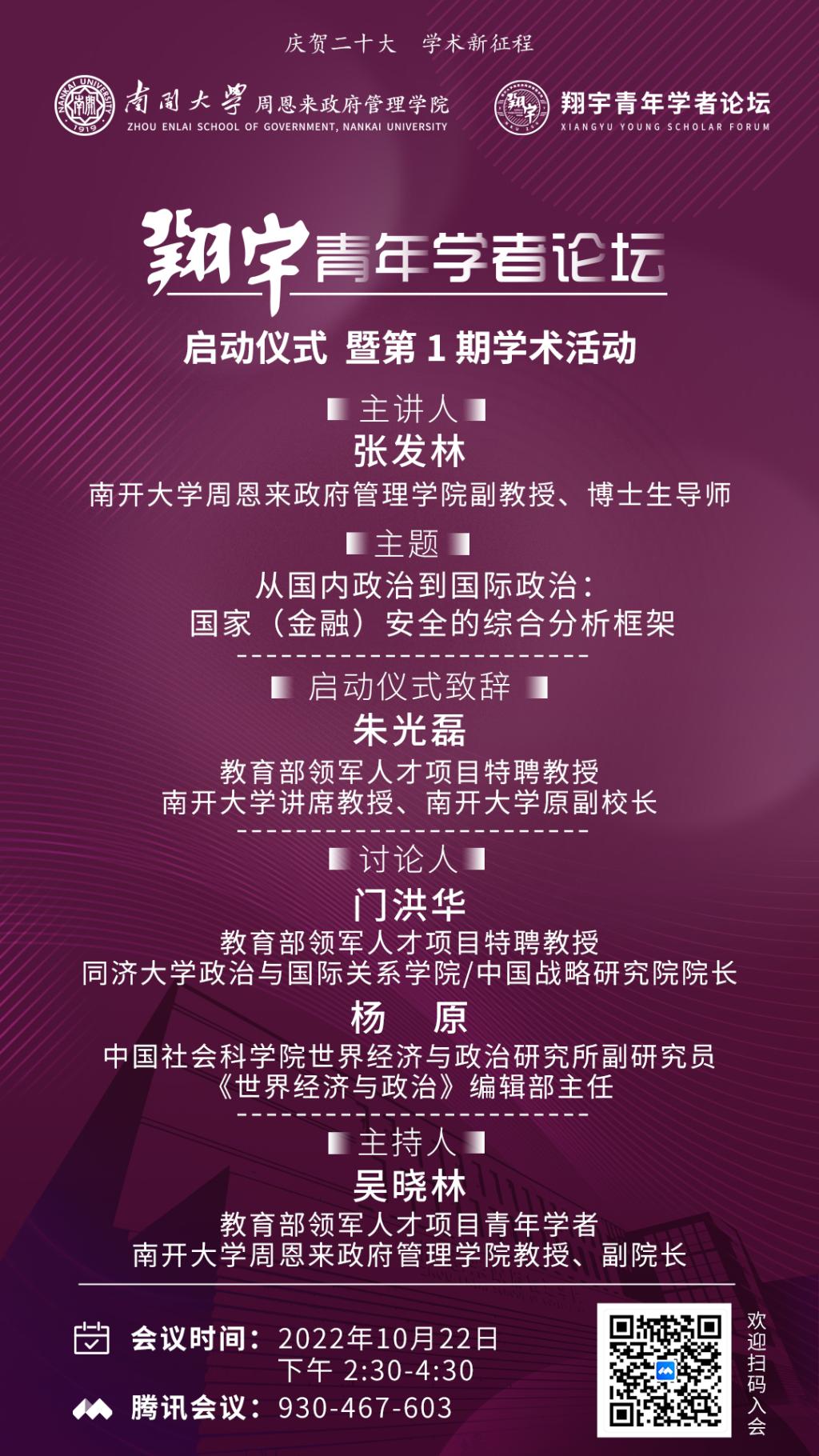 献礼二十大| 南开大学政府学院“翔宇青年学者论坛”首期开讲