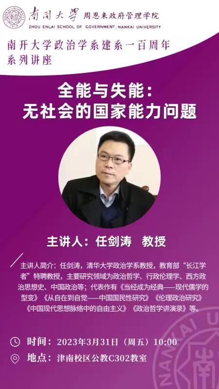 202333110:00,南开大学周恩来政府管理学院政治学系建系一百周年系列讲座继续举办,敬请关注!