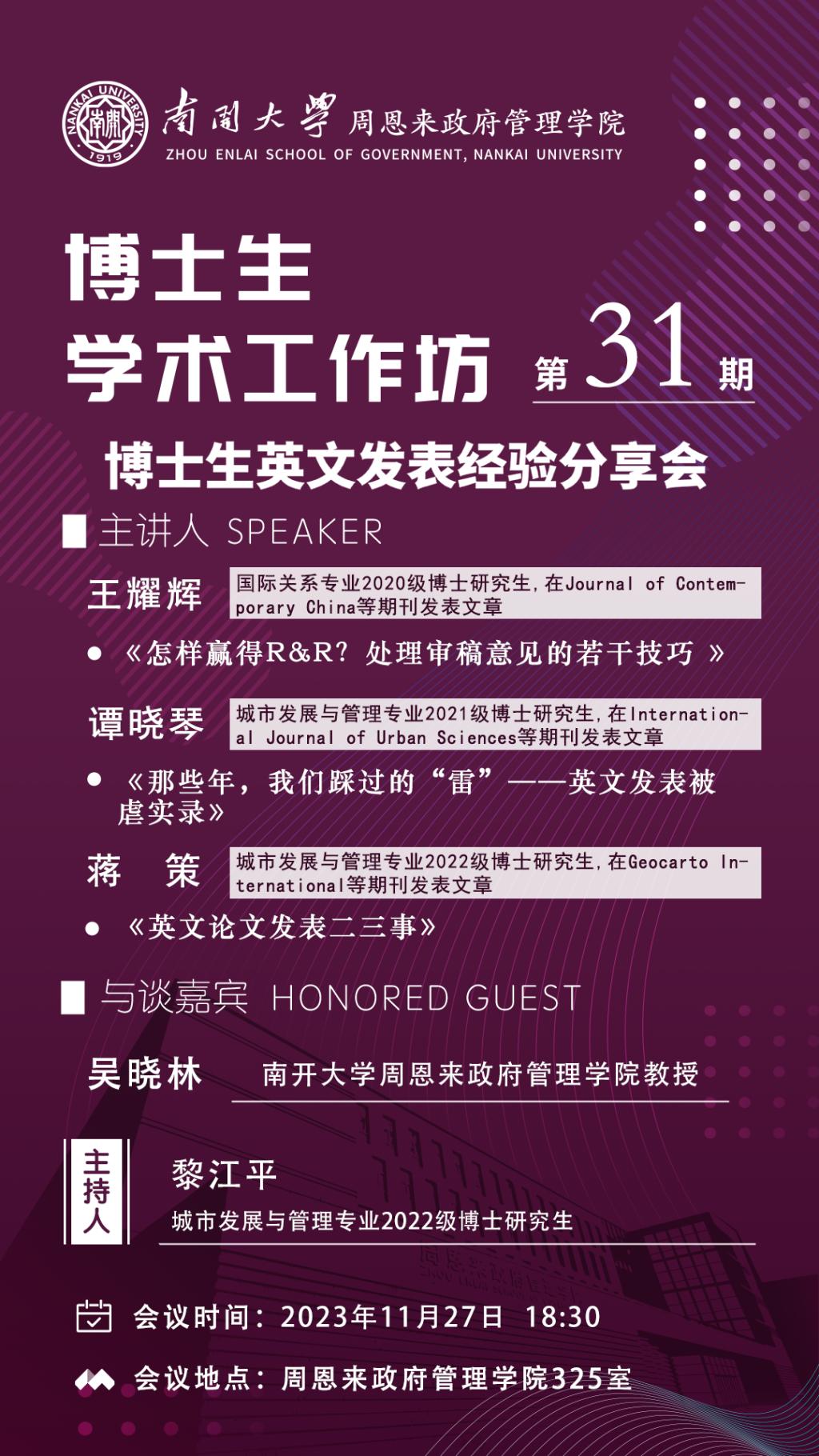 博士生学术工作坊第31期