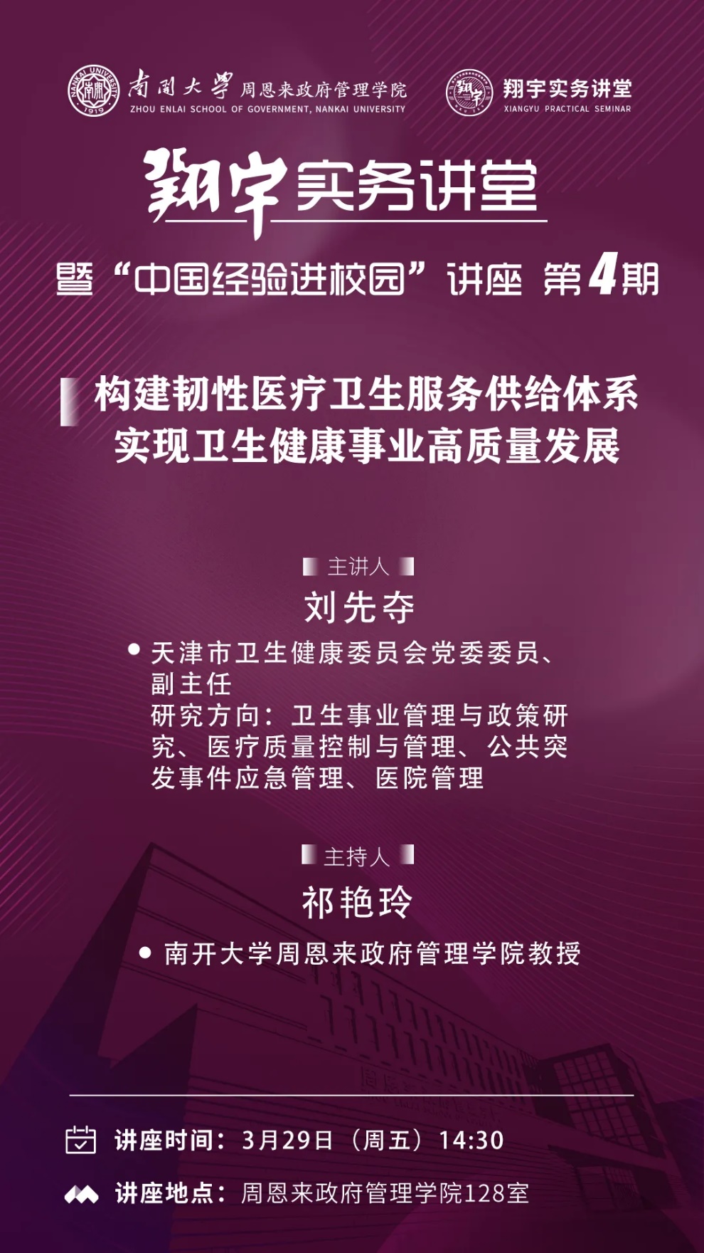 建院20周年系列讲座 | 南开“翔宇”实务讲堂第4期:韧性医疗卫生服务供给体系
