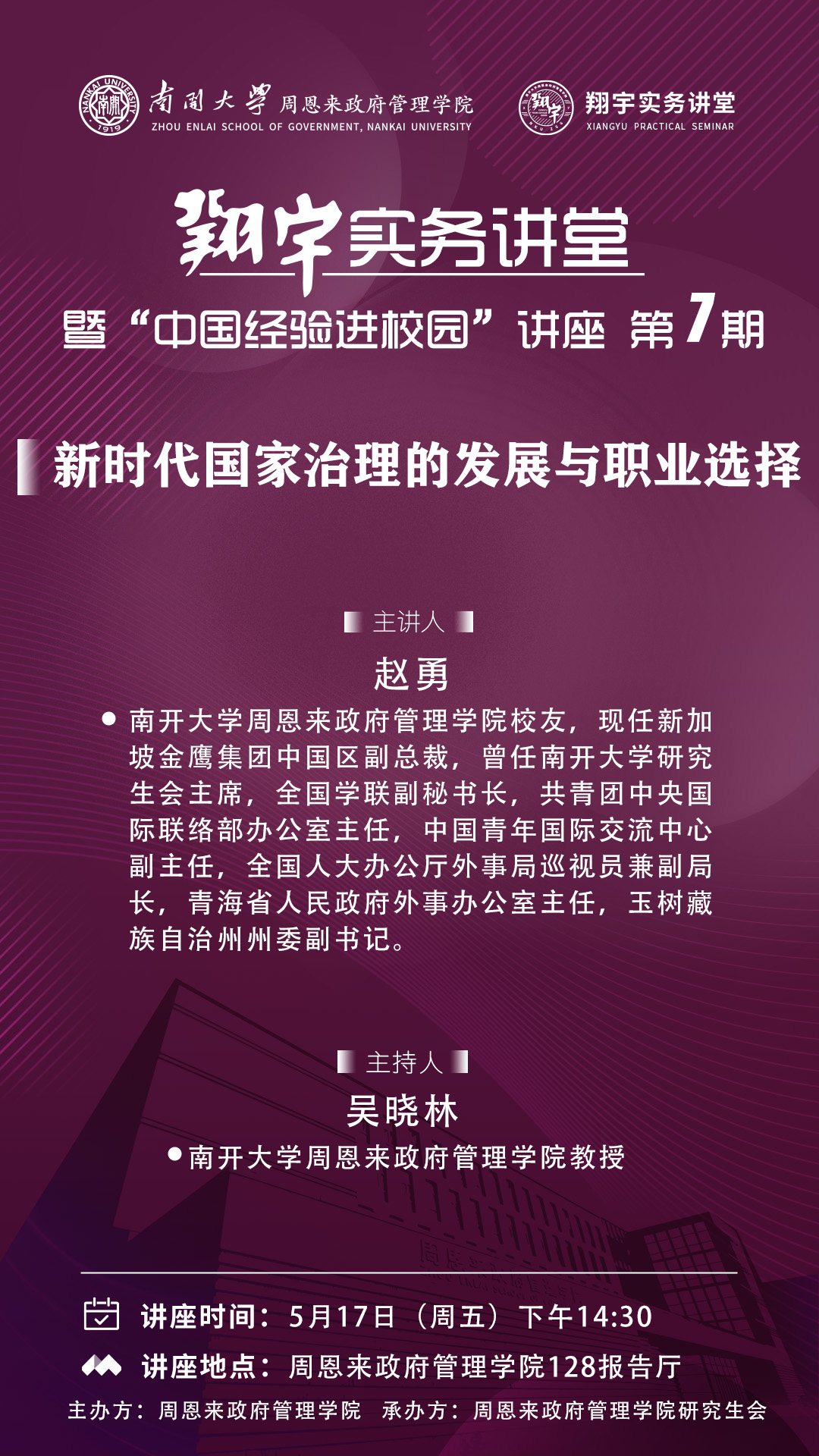 建院二十周年系列讲座 | 南开“翔宇”实务讲堂第7期:新时代国家治理的发展与职业选择